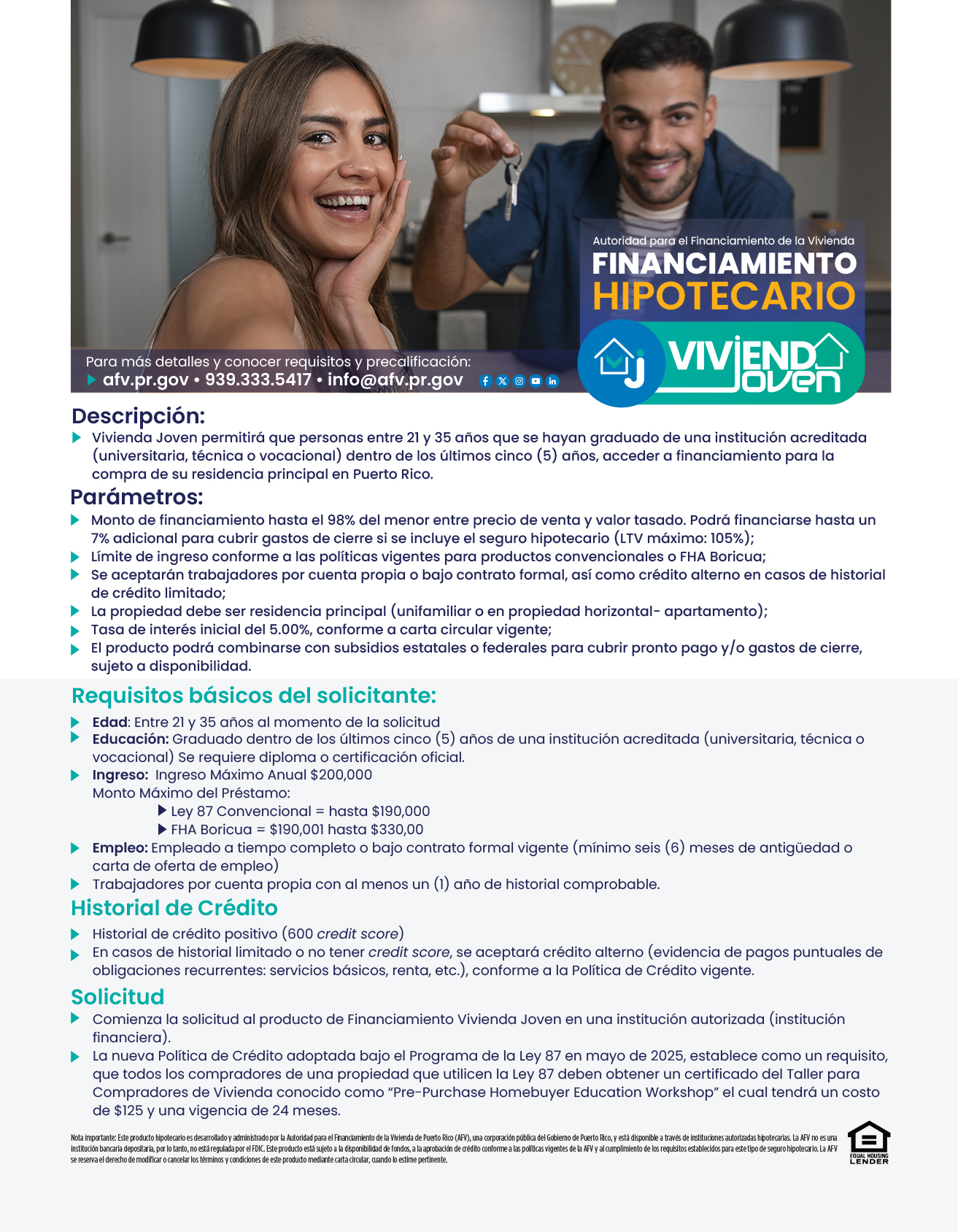 ¿Eres desarrollador de viviendas y buscas una opción ágil, segura y competitiva para financiar tu próximo proyecto? La AFV te ofrece soluciones efectivas para impulsar la construcción de vivienda accesible en Puerto Rico.